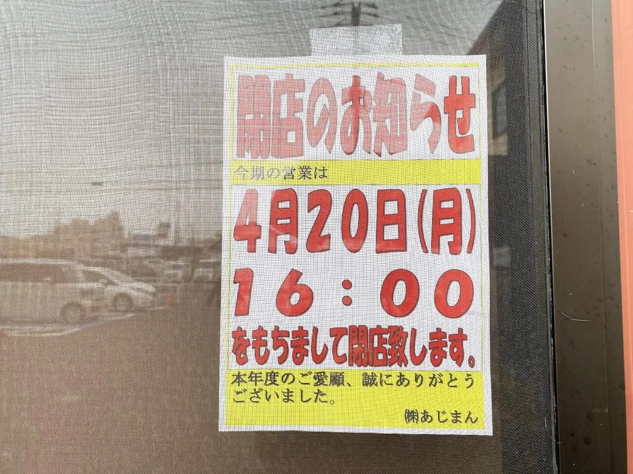季節ごとに出店される店舗として、毎年利用している方も多い「あじまん」。今期の営業期間は終了となりますので、また来期の再開を楽しみに待ちたいですね。